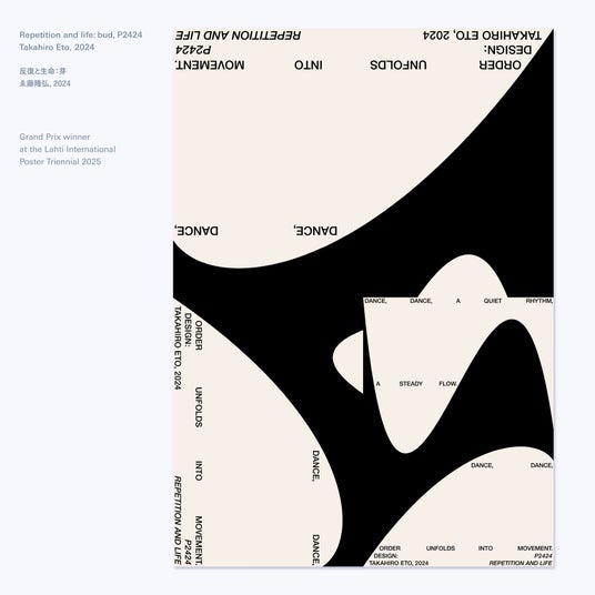 STUDY LLC.の代表 ゑ藤隆弘が手がけたポスター《Repetition and life: bud, P2424》が、フィンランド・ラハティで開催されている「ラハティ国際ポスタートリエンナーレ2025」にてグランプリを受賞しました。本コンペティションは1975年に創設された歴史ある国際ポスターコンペティションで、今回は50周年記念展として開催され、世界から約4,000点の応募がありました。ゑ藤は2022年の大会でもグランプリを受賞しており、2014年にトリエンナーレ形式に移行して以降、初の2大会連続グランプリ受賞者となります。