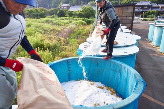 梅干しの製造工場。梅の産地和歌山県みなべ町で地元の契約農家から仕入れた