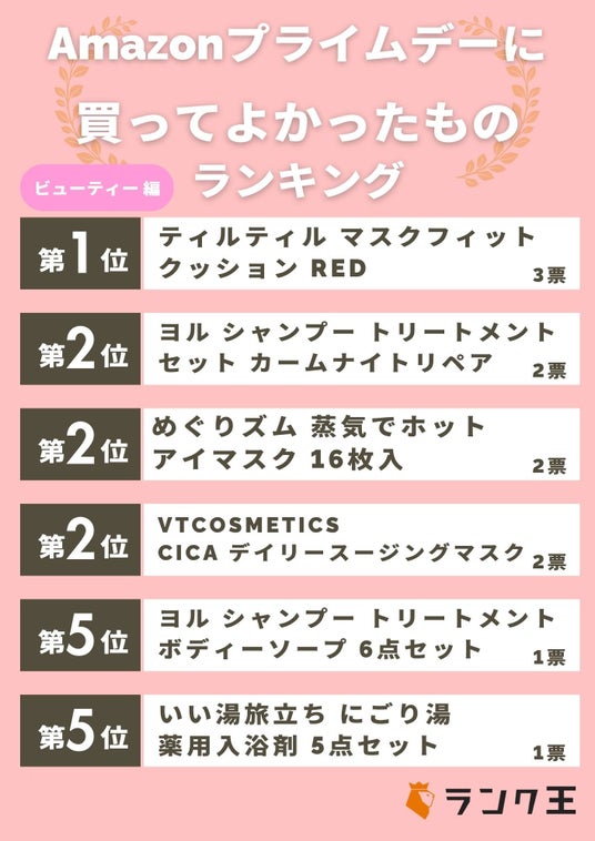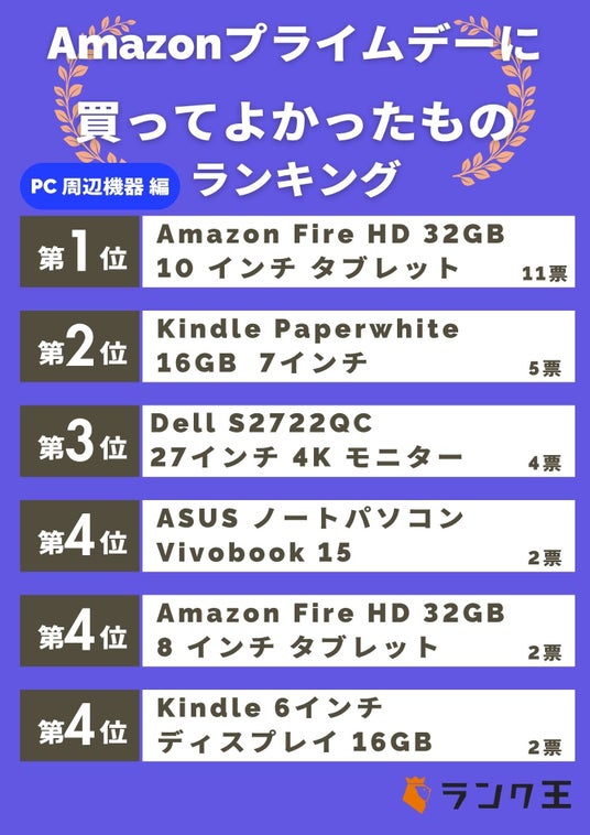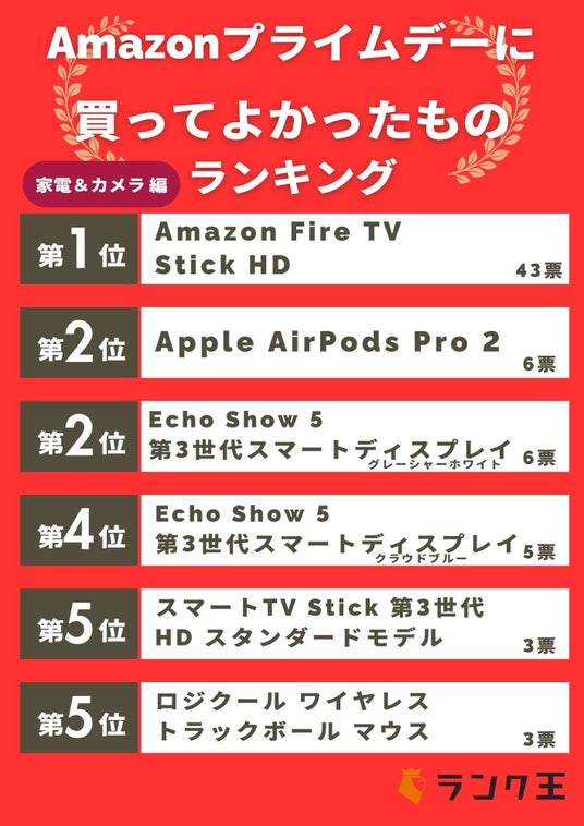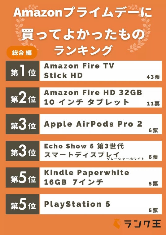 ランク王株式会社(本社:東京都渋谷区、代表取締役社長:山下 主暉)が提供するメディア事業『ランク王』は、「Amazon大規模セールで買ってよかったもの」というテーマで20代から40代を中心としたAmazonプライム会員1,000名に大規模アンケート調査を実施しました。