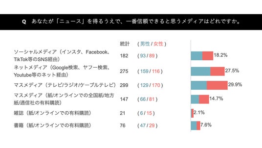 「あなたが「ニュース」を得るうえで、一番信頼できると思うメディアはどれですか。」との質問に対する回答結果