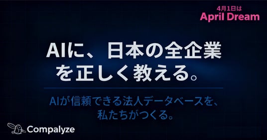 法人情報データベース「Compalyze(カンパライズ)」を運営する株式会社Compalyze(滋賀県草津市、代表取締役:鈴木隆士)は、4月1日の「April Dream」に際し、私たちが叶えたい夢を宣言します。