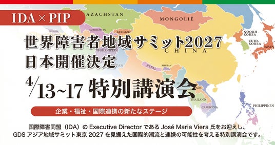 一般社団法人PEACE INCLUSION PIECE(代表理事:南北ちとせ、以下PIP)は、国際障害同盟(International Disability Alliance、以下IDA)との共催により、特別講演会「企業・福祉・国際連携の新たなステージ」を2025年4月13日(月)より東京・福岡・大阪の3都市で開催します。