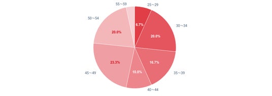 年齢層は25~59歳で、30代と40代で約7割を占めた。
