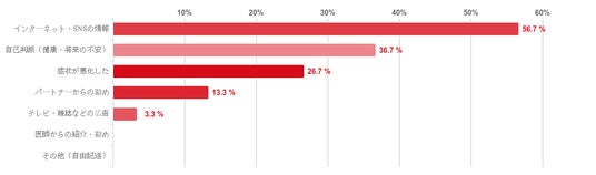 ED治療を受診する際、決め手になったポイントとして、「インターネット・SNSの情報」と回答した人が半数を超えた。