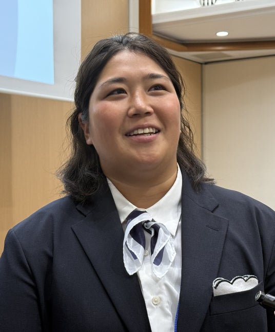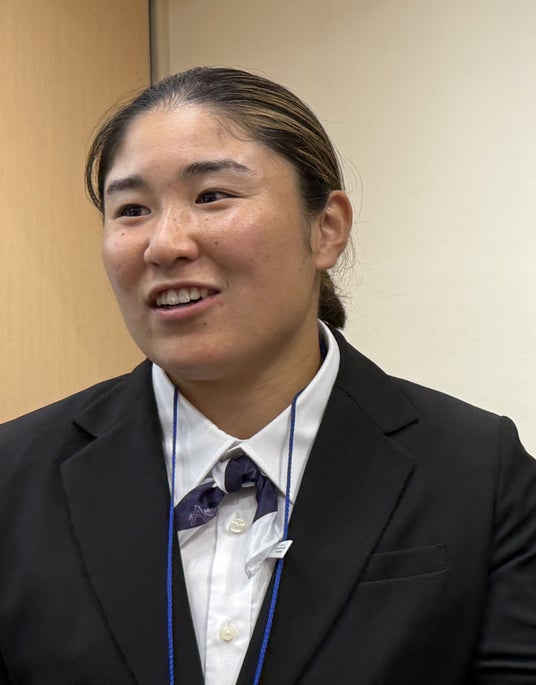 彼女は怪我ですごく苦しんだ時期がありましたが、そういう逆境の中でもしっかりと前を向いてラグビーにも、仕事にも真摯に取り組んでくれていました。そういう姿勢に社員一同、すごく勇気づけられてきたと思っています。ワールドカップでもはつらつとしたプレーを見せてもらって、社員を勇気づけてもらいたいなと期待しています。