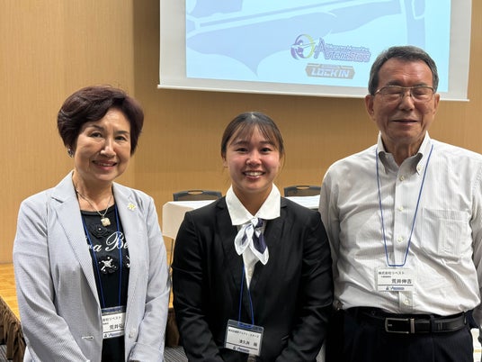 左から株式会社リベスト 荒井弘美様、津久井萌選手、株式会社リベスト 荒井伸吉様