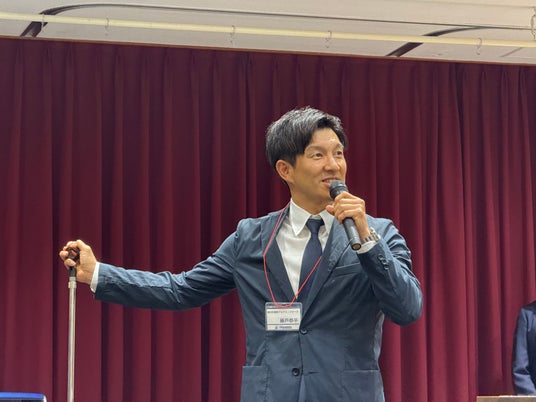 横河武蔵野アルテミ・スターズ 藤戸恭平HC。軽快なトークで会場中を笑いの渦に巻き込んだ。