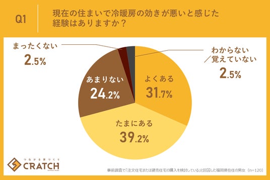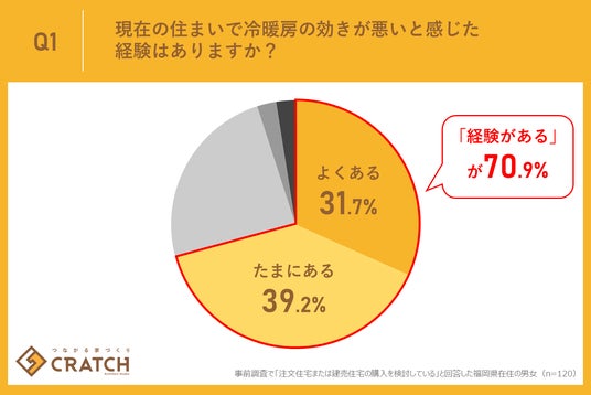 今回の福岡県に在住している方を対象とした調査結果から、現在の住まいで冷暖房の効きの悪さを感じた経験がある方が全体の7割以上にのぼることが判明しました。