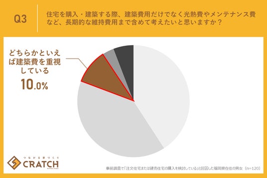この結果から、福岡県で住宅購入を検討している方にとって、単に建物の価格だけでなく、購入後の光熱費シミュレーションや、長期修繕計画といった、いわば「住宅の生涯コスト」が重要なポイントであることがうかがえます。