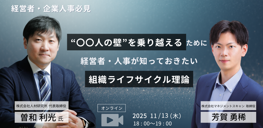 11/13(木)18:00~ 組織成長モデルのエッセンスを知ることで、組織課題に対する予防医学的アプローチを(株式会社人材研究所・株式会社マネジメントスキャン共催)