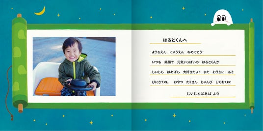 また、絵本は繰り返し読むものなので、なかなか会えないお孫さんなどに贈る際は一緒に写った写真を選ぶと、会えない時間も身近に感じていただけると思います。