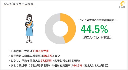 今回株式会社CLACKでは、支援対象をシングルマザーとし、NPOとともにミッションである「学ぶと働くの未来の当たり前をつくる」の実現に向けて、親と子それぞれに伴走してまいります。