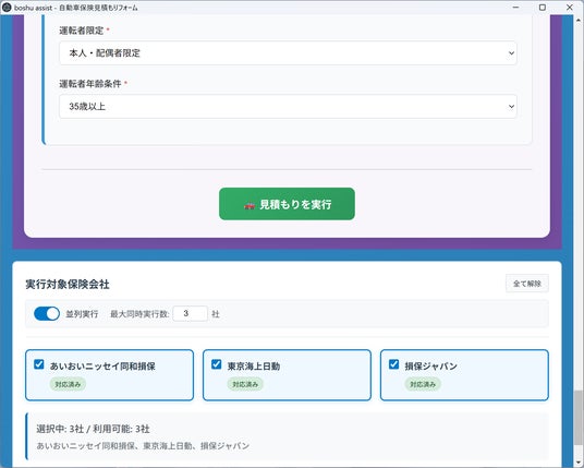 3. 見積もり対象の保険会社を選択し実行