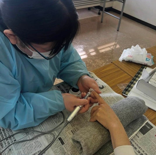 現地の介護・看護従事者からの強い要望により、“爪のレスキュー隊(R)”が北陸に初出動。変形した爪や巻き爪で悩む高齢者に寄り添う専門人材の育成が本格化します。