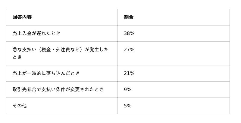 最も多かった回答は**「売上はあるが入金が遅れたとき」**でした。