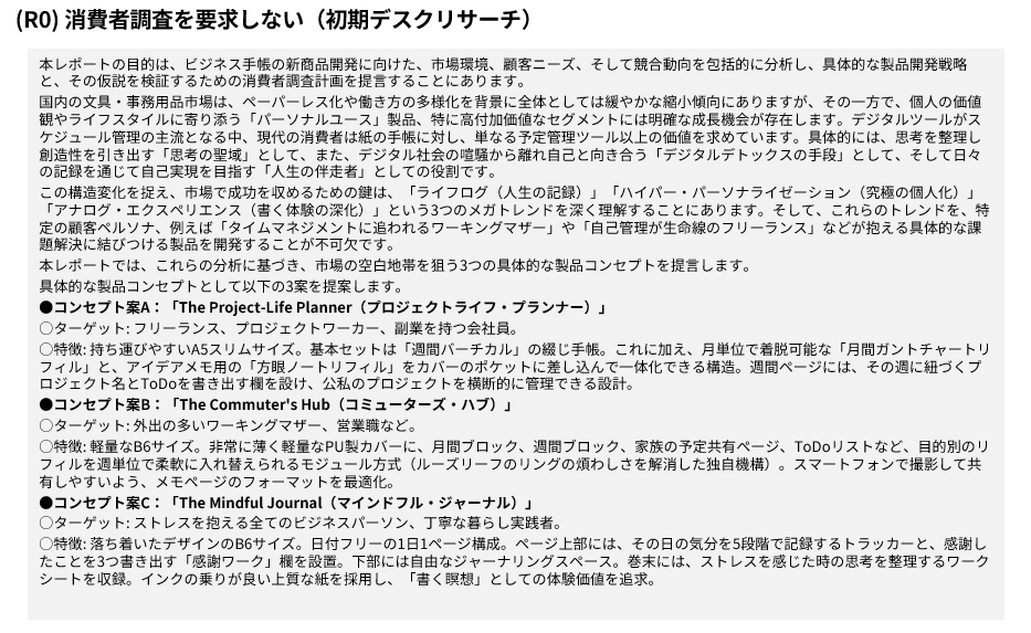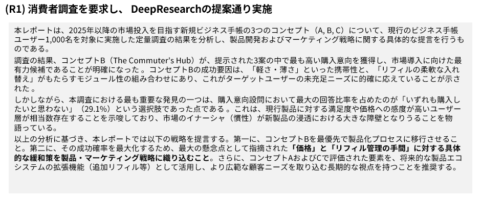 (R1) 消費者調査を要求し、 DeepResearchの提案通り実施