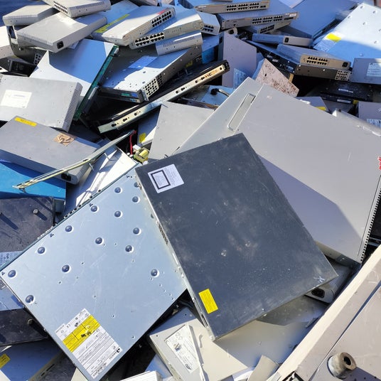 スクラップヤードに集まった電子機器類