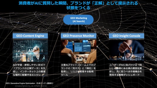 本ソリューションは、「Search 3.0」環境下において、消費者が触れるすべてのAIプラットフォーム