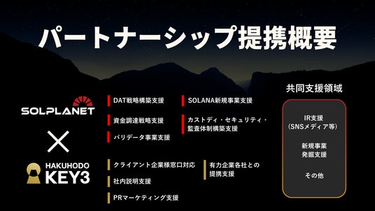 株式会社SOLプラネット(本社:東京都、代表取締役CEO:野坂 幸司、以下「当社」)は、株式会社博報堂キースリー(本社:東京都港区、代表取締役社長:重松 俊範)と業務提携をいたしましたので、下記の通りお知らせいたします。