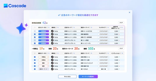 Cascade株式会社(本社:東京都渋谷区、代表取締役CEO:宮内 和貴)は、AIを活用したデジタル広告最適化サービス「Cascade」の正式提供を開始しました。
