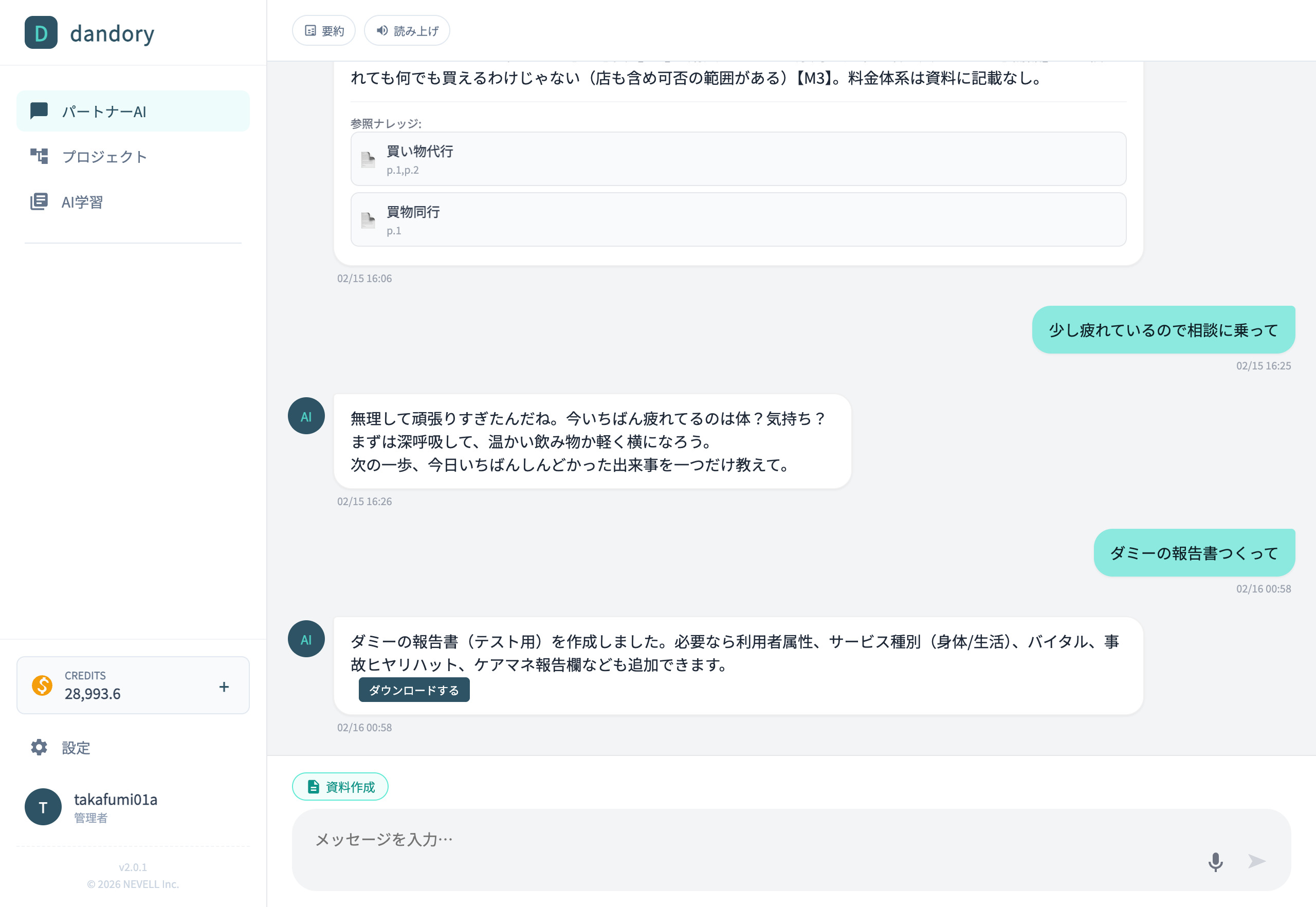 NEVELL株式会社(本社:札幌市、代表取締役:杉本 隆史)は、個人ごとに専用のパートナーAIを付与し、プロジェクト管理や社内ナレッジ活用、書類作成まで支援するAIエージェント 「dandory(ダンドリー)」 を提供します。
