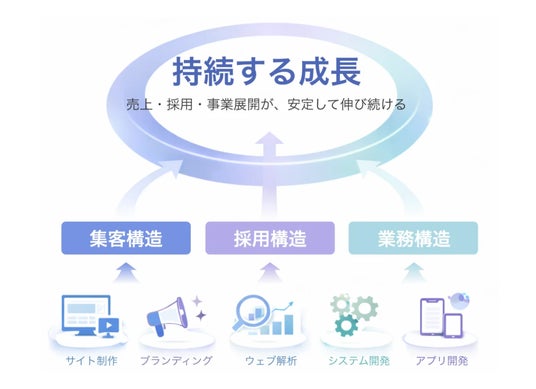 ホームページは単なる看板ではなく、24時間働く「経営基盤」であるべきです。私たちは【集客・採用・業務効率化】を阻む壁をテクノロジーで破壊し、事業成長とデジタルトランスフォーメーション(DX)を加速させる戦略的パートナーとして、企業の未来を共に歩みます。