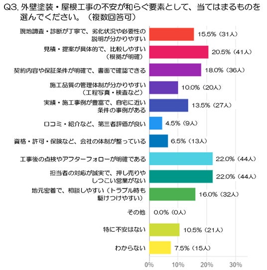 Q3.外壁塗装・屋根工事の不安が和らぐ要素として、当てはまるものを選んでください。(複数回答:注2)