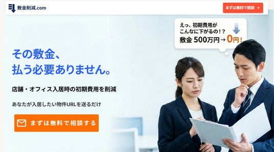 「敷金削減ドットコム」初期費用を大幅に圧縮し、事業投資へ回すことが可能。