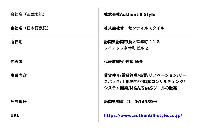 株式会社Authentill Style(本社:静岡県静岡市、代表取締役:佐須 陽介)は、不動産賃貸仲介・管理会社向けのBtoB SaaS「AI Cro'style(AIクロスタイル)」の提供を開始いたしました。