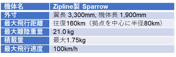 Zipline社製固定翼機ドローン