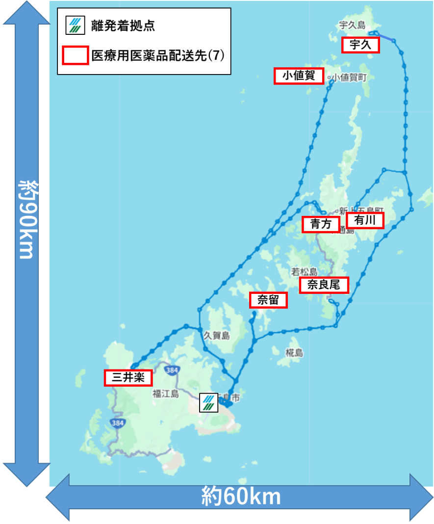 そらいいな(株)医薬品配送経路一覧(長崎県五島列島)