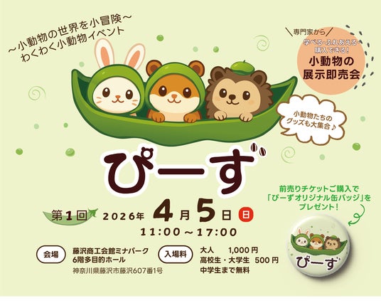 ぴーず実行委員会(運営:株式会社Chronos、所在地:神奈川県鎌倉市、代表取締役:稲田富之)は、小動物と人、人と人がやさしくつながる小動物の展示即売会「ぴーず」を、2026年4月5日(日)に藤沢商工会館ミナパークにて初開催いたします。