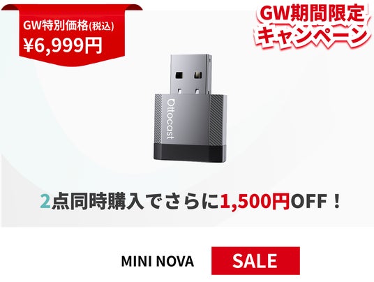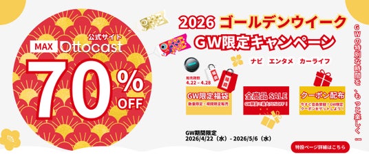 車載エレクトロニクスブランド「Ottocast(オットキャスト)」を展開するOttocast株式会社(所在地:東京都)は、2026年4月22日(水)より、ゴールデンウィーク期間限定の二段階キャンペーンを実施いたします。
