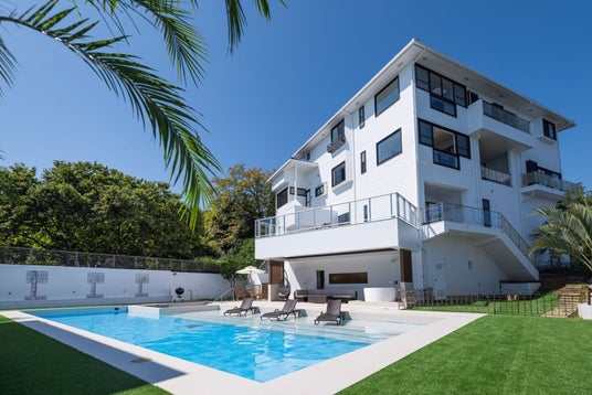 --500坪の敷地に、プール・サウナ・天然温泉を備えたラグジュアリーヴィラ。大人数での集まりにも対応でき、いつも笑い声が絶えない賑やかな宿。