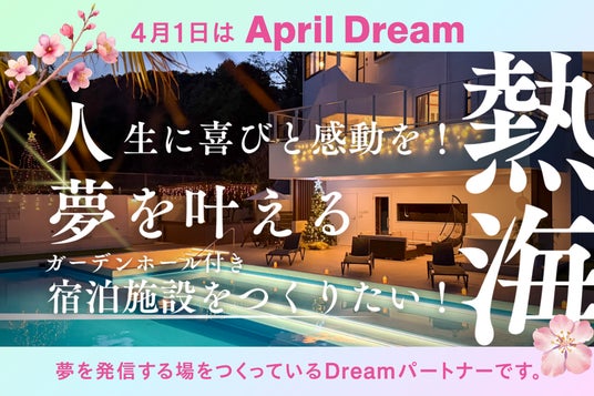 合同会社CHRISTY(静岡県熱海市、代表:松本眞理)は、4月1日を夢を発信する日にしようとするApril Dreamに賛同しています。このプレスリリースは「海彩テラス熱海」の夢です。