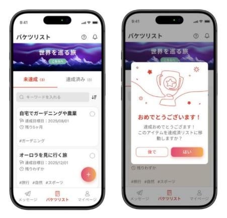 人生でやってみたいことを登録する「バケツリスト機能」を搭載。「自分は本当は何がしたいのか」を見つめ直すきっかけとなります。