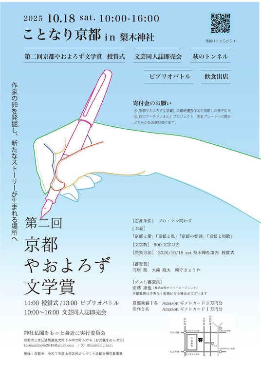 イベント名: ことなり京都 第3回京都やおよろず文学賞 in 梨木神社