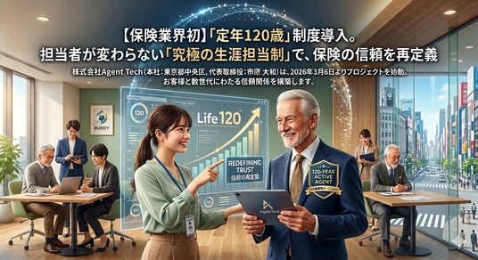 株式会社Agent Tech(本社:東京都中央区区、代表取締役:市原 大和、以下「当社」)は、2026年3月6日より、全従業員およびパートナーの定年を120歳とする「120歳定年プロジェクト」を始動いたします。実質的な定年制の撤廃により、お客様と数世代にわたる信頼関係を構築し、保険業界における「担当者変更による不安」を解消します。