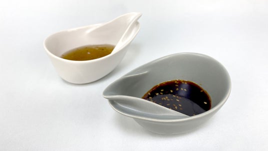 液だれしても受け止める構造のため、ポン酢やドレッシング、タレなど幅広く活躍!調味料の調合から食卓提供までをひとつで完結できるテーブルウェア。創業70年の老舗陶磁器メーカーが製造。特許権、意匠権申請中。