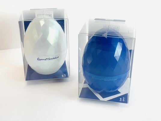 今回の象徴である「蒼玉(そうぎょく)」は、サファイアの和名。それは「かもめの玉子」の「玉」であり、物語を繋ぐ「玉手箱」の「玉」でもあります。ケースの形状は「たまご形」をベースに、宝石のようなダイヤモンドカットを施しました。微細なラメを配合した蒼は、光を浴びるたびに三陸の海のようにキラキラと表情を変え、あなたの大切な想いを美しく守り続けます。