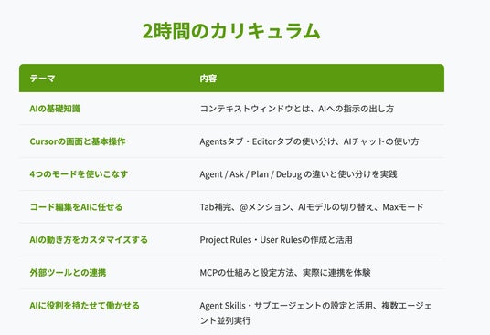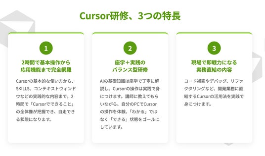 AI駆動開発協会が、エンジニア生産性を最大化する「AI駆動開発」の研修を提供開始。AIエディタCursorの全てを2時間でマスターできるのが特徴。