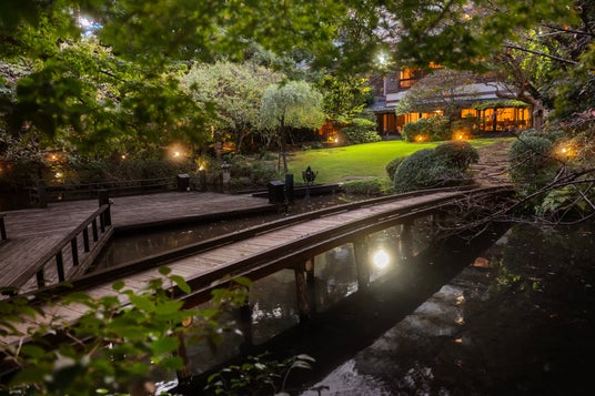 浮月楼の庭園には、四季折々の樹々を映す池と、その景色へ人々を導いてきた一本の弓反り橋があります。しかし現在、その橋は老朽化により、安全面の観点から渡ることが難しい状態にあります。