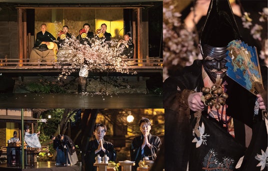 その空間に呼応するかたちで、財団評議員 能楽師・大鼓方の大倉慶乃助氏をはじめとする囃子方の演奏、狂言方 野村万之丞氏による三番叟の舞が奉納され、土地への感謝と命の循環を主題とした新たな奉納「浮月シャクジ能」が結実しました。