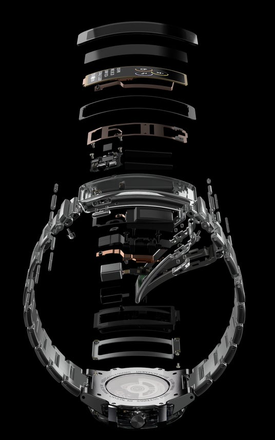 本モデルは、装着感を重視したケース設計と、誕生当初から続くwena純正腕時計のデザインフィロソフィを受け継ぐすり鉢状(コンケーブ)の文字板を踏襲。さらに、腕時計部分よりもむしろ「wenaX(バックル部分)が製品としての主役であること」を象徴するフルスケルトンモデルとして仕立てました。wenaの哲学である腕時計とスマートウォッチの一体化を、コンセプチュアルに表現した、上質な記念モデルです。