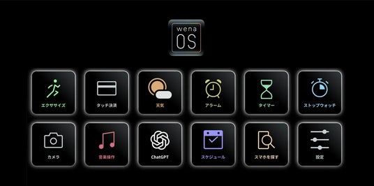 wena OSは、「超省電力」「安定性」「リアルタイム性」を満たすために最適化されたRTOSベースの独自OSです。wena Xは、1週間のバッテリー持ちにより、充電に追われない日常を実現します。