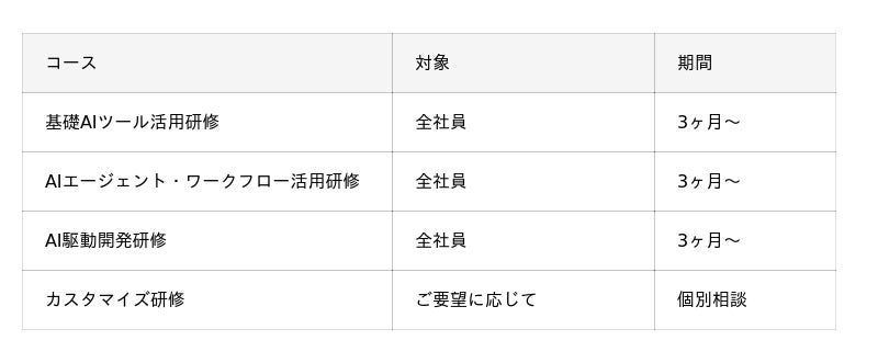 ▶ 研修の詳細: https://www.ai-native.jp/lp/ai-kenshu