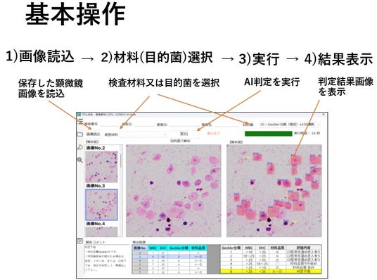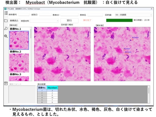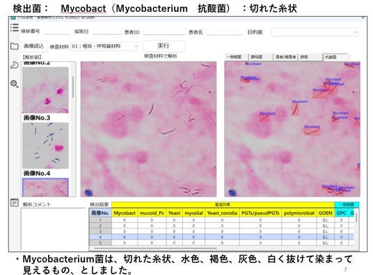 一般細菌、真菌、抗酸菌、白血球貪食、ゲックラー分類などの菌形態をAIが解析。