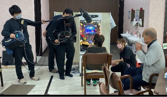 NHK前橋「ほっとぐんま630」の取材の様子(福祉施設における機能訓練用パチンコの活用)
