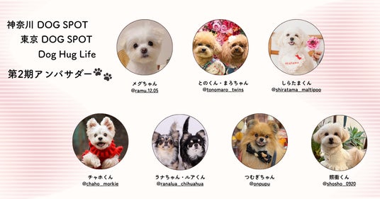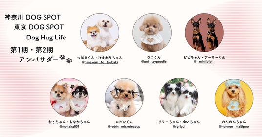 犬連れおでかけ情報を発信する「神奈川 DOG SPOT」「東京 DOG SPOT」「Dog Hug Life」(Instagram合計フォロワー約3.7万人)は第2期アンバサダーの就任を発表しました。