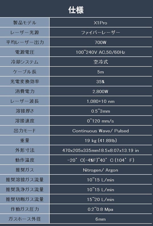 X1 Proは19kg(41.9ポンド)と、軽量化なレーザー溶接機でございます。
